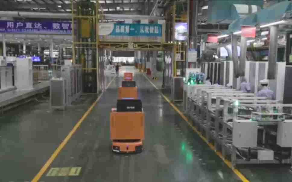 为车载冰箱物流配送打造的智能解决方案,,,,包含产中物流通过潜伏举升AMR搬运至线边,,,产后成品物流智能仓储,,流程包含产中物流智能齐套入库,,,线边安灯叫料AMR智能配送至线边,,成品入库、、出库,,通过无人堆高车机器人,,,,智能仓储管理替代人工作业管理,,实现更高存储、、、更高效率、、、更具柔性化的解决方案。。